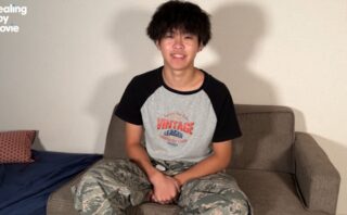 動画冒頭では女性スタッフを前に少し緊張した面持ちでしたが、プレイがはじまると、すぐにチンコは元気にムクムクと起ち上がります!
