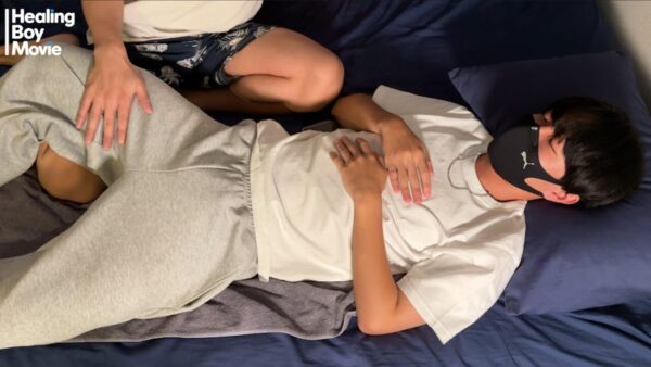 プレイ開始後、撮影スタッフが軽く乳首を攻めると、パンツの上からでも分かるもっこりw 苦しそうにしてたのでパンツを脱いでもらうと、真っすぐに伸びたバキバキのチンコが登場!