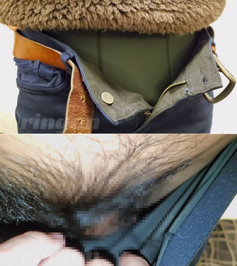 毛の濃い下半身、そしてまだシャワー浴びる前の穴を拝見…