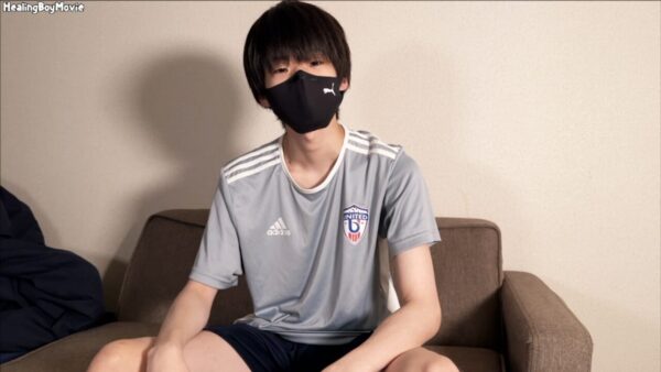 まずはオナニー! サカユニを脱がせ下半身を露出させると、すでに大きくなったチンコがお目見えです! 見た目によらずしっかり毛が生えているのが好印象! まずはカメラの前でシコシコとオナってもらいました!
